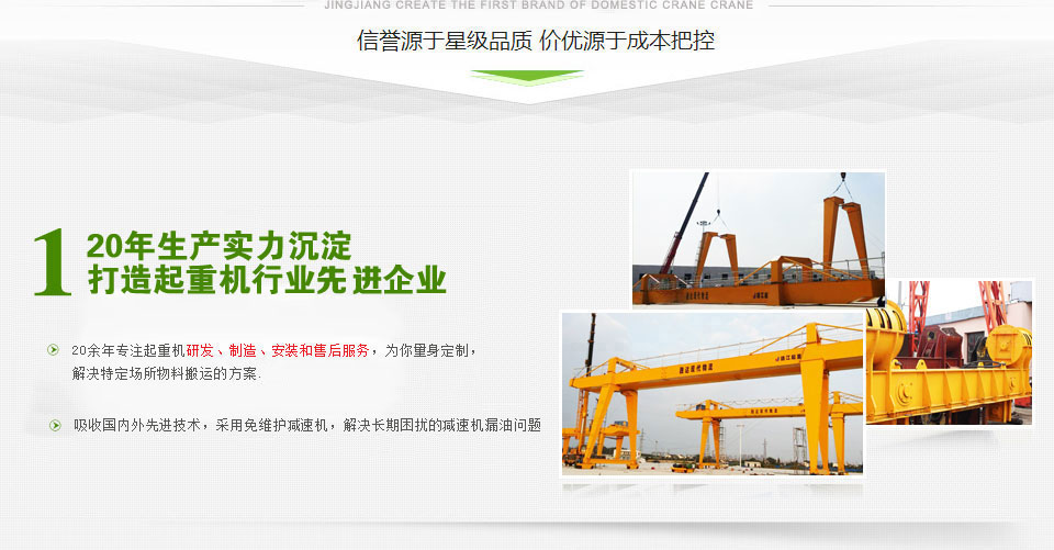 靖江市起重設備廠家直銷懸臂起重機、固定式懸臂起重機、單雙梁橋式起重機、簡易門式起重機、電動葫蘆門式起重機型號齊全,價格合理 - 座落在美麗富饒的江浙平原,魚米之鄉(xiāng)--江蘇省靖江市,位于長江之濱。毗鄰江陰長江公路大橋, 與江陰、張家港隔江相望,緊鄰上海、南京、蘇州、無錫等發(fā)達的大中城市,經濟環(huán)境和地理位置得天獨厚。 緊靠京滬、寧通高速公路 公路和水路交通極為便利。